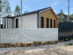 Барнхаус в скандинавском стиле. кухня гостиная ~30 кв.м., две спальни по 16 кв.м. , кабинет-гостевая 9 кв.м., два сан узла и котельная. Окна Мелке 70 с напылением мультистекло. Дверь с терморазрывом. Кровля из кликфальца, утепление стен и кровли 200 мм, мембрана изоспин профи , пароизоляция дельта Дави200.