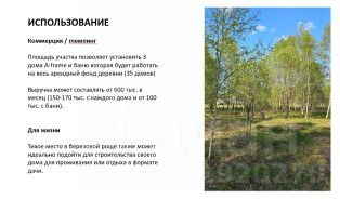 Продается участок 23 сотки (2300м2) с фактическим испольованием до 35 соток (3500 м2) в креативной деревне Flacon. Самый красивый и живописный участок в Деревне. Идеальное место для круглогодичного или дачного проживания или организации глемпинга. Если заинтересовались напишите пришлю детальную презентацию с ответами на все вопросы по участку. На участке можно поставить 3 дома и баню, доход 500-700 тыс в месяц.