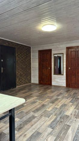 Первый этаж- просторная кухня, санузел, гостиная с камином, погреб для солений;