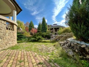 На участке выполнен рельефный ландшафтный дизайн, дополнительно отдельно расположены: гостевой дом: кухня, прихожая, спальня, санузел.