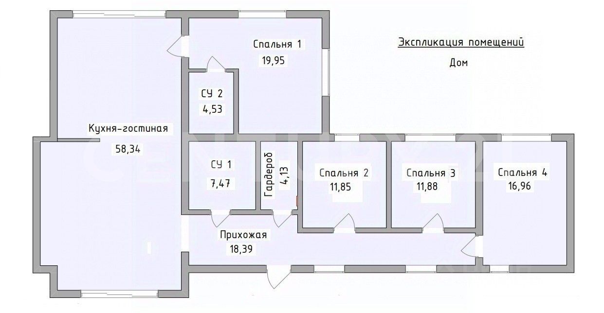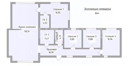 Комфортная планировка с 4 отдельными спальнями, просторной кухней-гостиной, гардеробной и двумя санузлами. Из гостиной выход на крытую веранду, ведущую к бане.