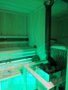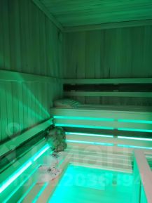 На первом этаже находится кухня-гостинная с камином, с/у с душевой кабиной, сауна.