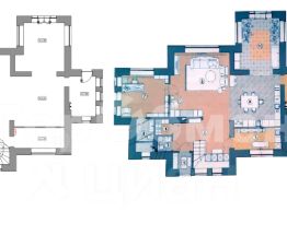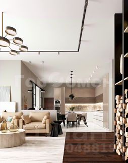 1 этаж: прихожая, санузел, гардеробная, постирочная, кухня гостиная (57.6кв.м), кабинет либо спальня с выходом на участок и санузлом, оранжерея, котельная. Общая площадь 140кв.м. Высота потолков 3,5м