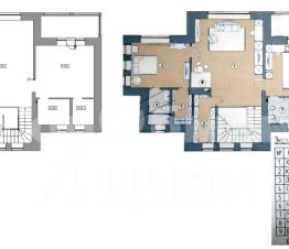 2 этаж: 2 мастер спальни (23 и 18,5 кв.м) с гардеробными и санузлами, кладовая, холл из которого можно сделать еще одну комнату, балкон. Общая площадь 115кв.м. Высота потолков 3,15м.