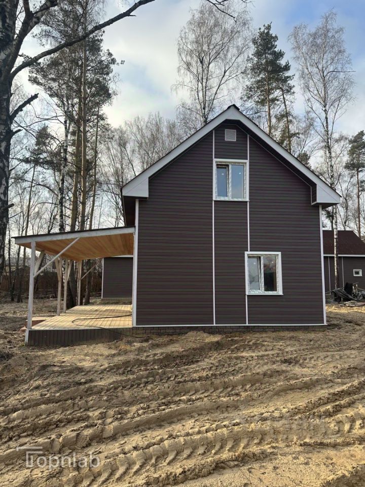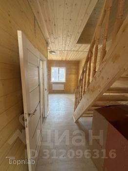 Внутри отделка: имитация бруса, высота потолков 2,8 м, полы ламинат, установлены межкомнатные двери и пластиковые окна, теплый пол в ванной комнате, электрическая разводка проведена, канализация заведена в дом, установлены унитаз, раковина и ванна.