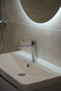 Санузел: полностью готов, ванна, раковина с тумбой, инсталляция, выводы под стиральную машину, все коммуникации скрыты.