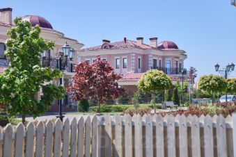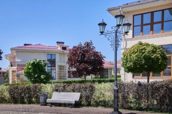 Территория поселка благоустроена, гипоаллергенное озеленение высажены деревья и кустарники, организована детская площадка, зоны отдыха. Охраняемая закрытая территория, видеонаблюдение.