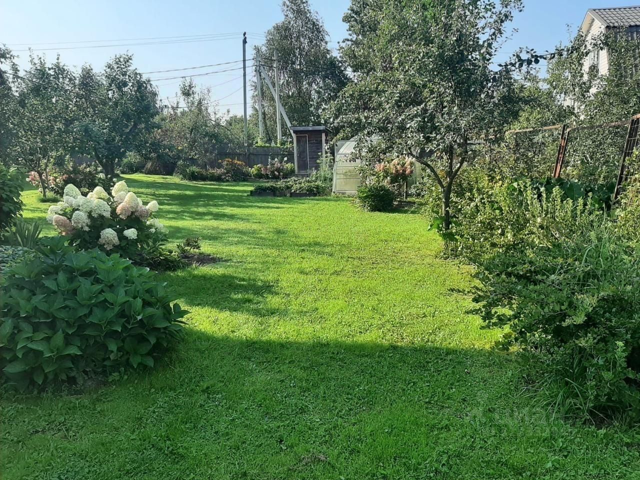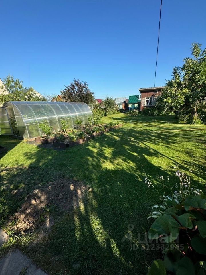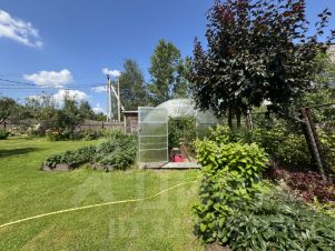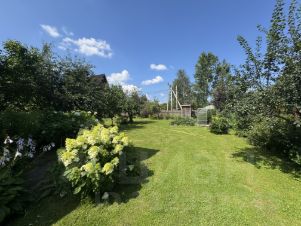 На участке выполнены земляные работы, выровнен, есть небольшой огород с теплицей, плодовые деревья и кустарники, качественный газон.