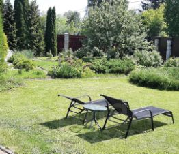 - благоустроенную зонированную территорию с лужайками и зелеными насаждениями;