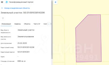 Участок 6.9 сотки. Кадастровый номер 50:31:0010301:6206
