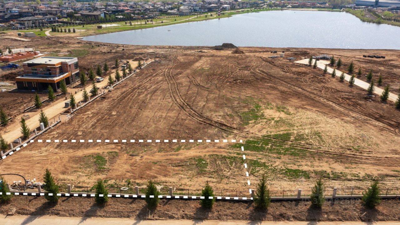 Благодаря небольшому возвышению рельефа в этой локации открываются потрясающие виды на посёлок и озеро. Правильная форма участка позволит воплотить в жизнь любой архитектурный проект.