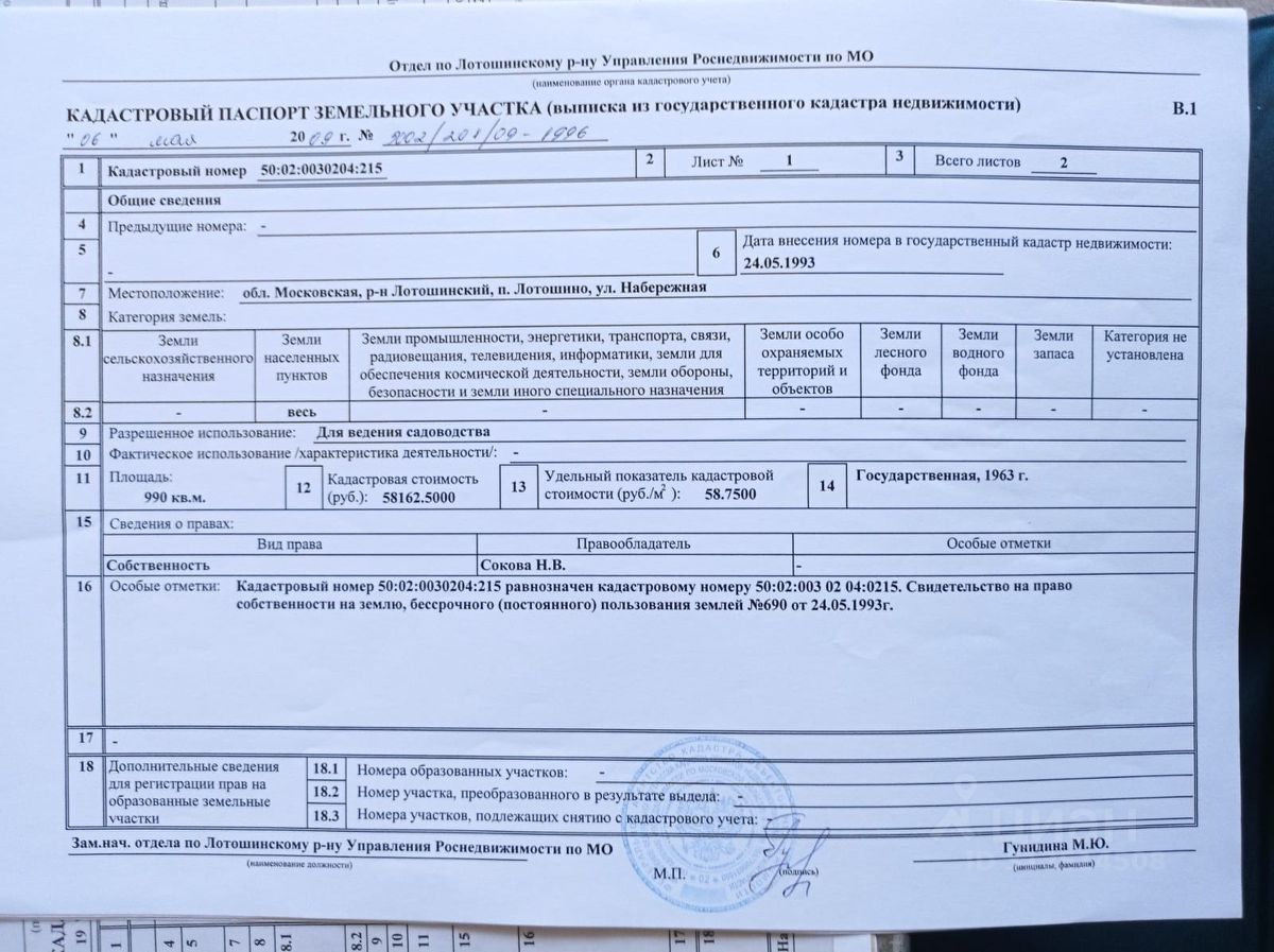 Кадастровый номер участка 50:02:0030204:*** указал продавец