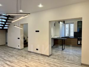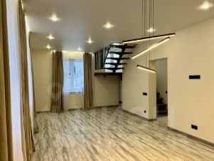 Парящая лестница. Натяжные потолки со встроенными карнизами и подсветкой.