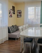 Внутренняя отделка: 100% под ключ. Натяжные потолки во всем доме, обои, ламинат, плитка в санузле. Дом очень теплый, отапливается всю зиму 2 батареями по 800 Вт. Находясь внутри дома создается атмосфера нахождения в квартире. Очень тепло, уютно, светло.