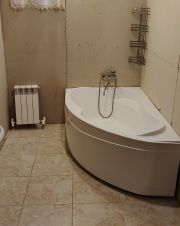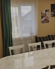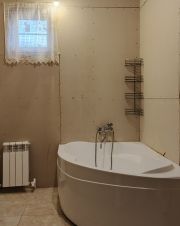 Дом очень светлый и теплый. Натяжные потолки в 60% помещений, на первом этаже ламинат, в санузле плитка. Гостиная и спальня подготовлены под обои.
