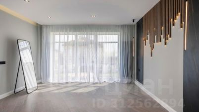 Спланированы 4 спальни, гостиная с каминным залом, кухня-столовая с выходом на террасу, спа-зона с сауной и комната свободного назначения площадью 75 м² на мансардном этаже, где можно оборудовать игровую, кинотеатр или тренажерный зал. По периметру территории посеян газон, проложены дорожки, установлена система уличного освещения и предусмотрена просторная площадка для въезда.