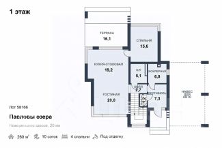 Лот 58166. Дом под отделку 260 кв.м. на участке 10.00 соток. Количество спален: 4.