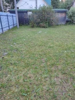 Вокруг дома - бетонная отмостка, дренаж, вся вода уходит в лес. На участке сухо, приподнят.
