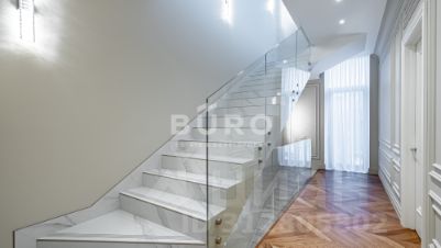 Высокие потолки (высотой 3,5 м.) и панорамные окна "от пола до потолка" делают дом невероятно светлым и уютным. Монолитные лестницы гармонично дополняют пространство.