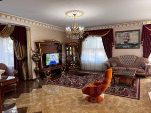 Дом полностью меблирован и наполнен изысканными предметами интерьера, вся мебель эксклюзивна сделана по индивидуальному заказу под данный проект, лучшими мастерами Китая с использованием дорогой древесины и натуральных материалов. В доме высокие потолки.