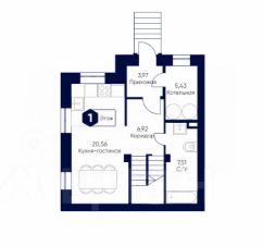 Первый этаж: Прихожая, котельная, коридор, кухня-гостиная, ванная комната