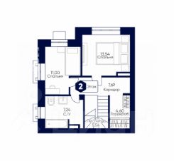 Второй этаж: холл, две спальни, ванная комната, гардеробная комната