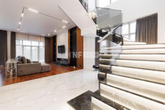Представляем вашему вниманию роскошный дом площадью 640 м², расположенный в живописном коттеджном поселке "Монтевиль", всего в 23 км от МКАД по Новорижскому шоссе.