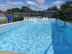 Участок с небольшим перепадом высот, ухоженный газон, хвойные и плодовые деревья, есть площадка для 2 автомобилей, каркасный бассейн в летнее время года устанавливается на участке.