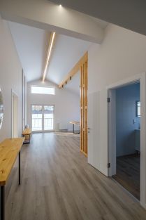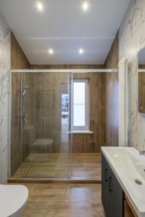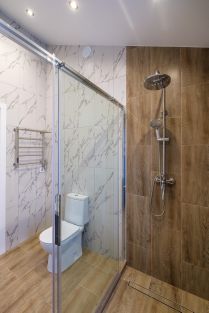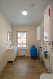 Полностью разведены все инженерные системы: электричество, канализация, отопление и водоснабжение. Коммуникации проведены под полусухой стяжкой.