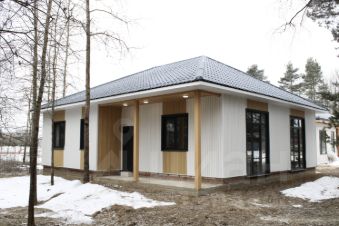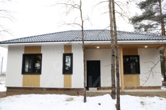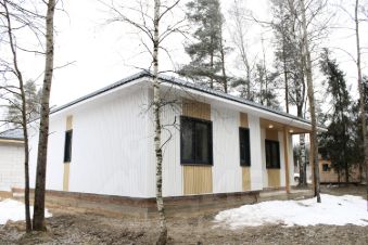 Дом из пеноблока на монолитной плите. Дом имеет три отдельные спальни, два санузла, кухню-гостиную.