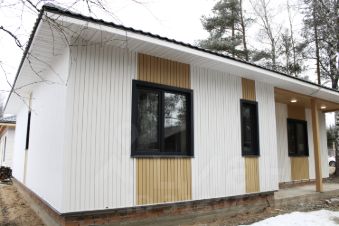 Отделка фасада: акриловые фасадные панели "Архитектурный планкен", утепление пенополистиролом 50 мм