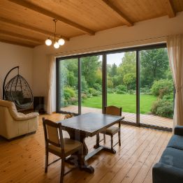 Гараж на две машины с автоматическими воротами, и теплым полом ( предусмотрена большая стеклянная витрина в сад, чтобы при въезде в гараж видеть красивые деревья на участке ) и в случае установки откатной стеклянной двери будет проход в сад через нее из гаража. К гаражу примыкает отдельная комната санузлом ( есть душ ) для гостей или водителя ( может в ней переночевать без доступа в основной дом ). Этот дом, отличный вариант для тех, кто ценит комфорт и приватность. Тихие, интеллигентные соседи и удачное расположение рядом с МЦД-4 Внуково — всего в пешей доступности.
