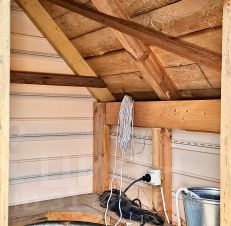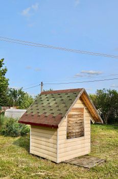 Дом с отоплением 103,3 кв. м. имеет 2 просторных этажа, пластиковые современные окна. Построен из сосны, привезённой с Поволжья. Вода от колодца заведена в дом. В доме находится сан узел с установленным в нём водонагревателем. Слив воды из сан. узла заведён в септик, расположенный при въезде на участок.