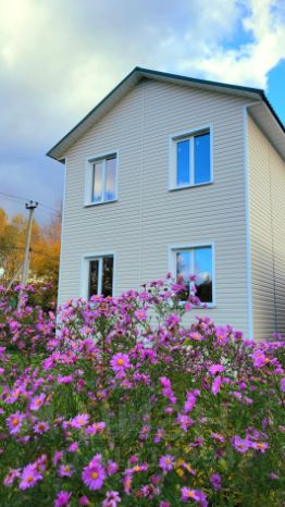 Дом обшит сайдингом, окна пластиковые VEKA, фундамент свайно ростверковый.