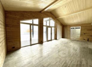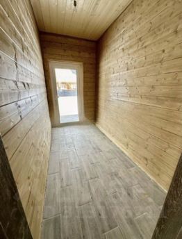 Входная дверь с терморазрывом. Внутри отделка имитация брус.Стены имитация брус. Натяжные потолки,Высота потолков 3.