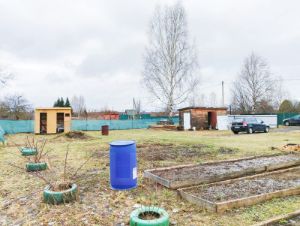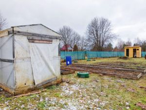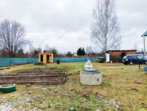 Участок по фасаду огорожен металлопрофилем,есть въездная группа. На территории имеется ещё вагончик,который раньше использовали как маленький домик.