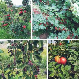 Есть сад с плодовыми деревьями и кустарниками, альпийская горка и много других декоративных растений, небольшой огород.