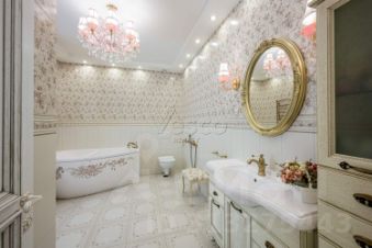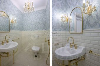 Дышащие обои и авторское покрытие под золотистым воском, полы: массив дуба, мрамор, итальянский керамогранит, в санузлах итальянская и испанская коллекционная плитка, мраморные подоконники.