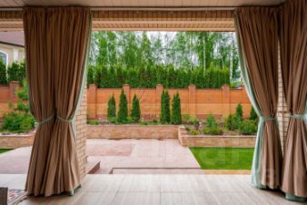 Забор из декоративного кирпича на монолитном фундаменте, облицованном натуральным доломитом. Дорожки и площадки на участке вымощены цветной брусчаткой на монолитном основании. Все внешние каменные покрытия обработаны гидрофобизаторами, технологические швы и стыки заполнены полиуретановыми герметиками.