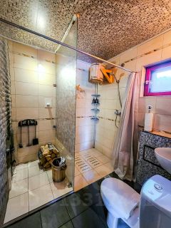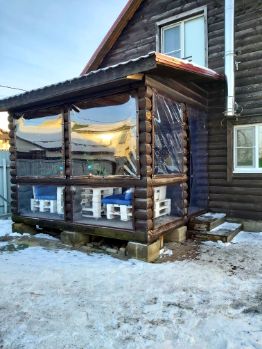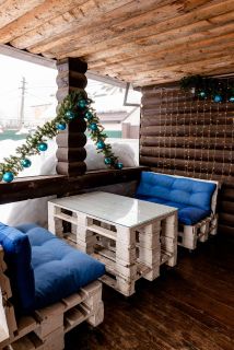 Маленький уютный бревенчатый дом с баней. На первом этаже прихожая, кухня-столовая, совмещенный санузел и баня с дровяной печью. Второй этаж это большое пространство, разделенное легкой перегородкой на две спальных зоны, есть возможность сделать 2 комнаты.