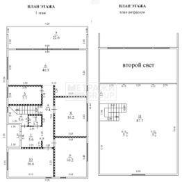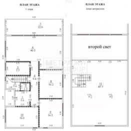 1 этаж: коридор 15 м2, кладовка 5.6м2 расположена под лестницей, 2 санузла (1.7 м2 и 7.7м2), 3 изолированные спальни (16.6 м2, 16.2 м2, 16.2 м2), объединённая кухня-гостиная 40.3 м2 с панорамными окнами, вторым светом и выходом на террасу 22.6 м2.
