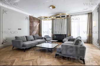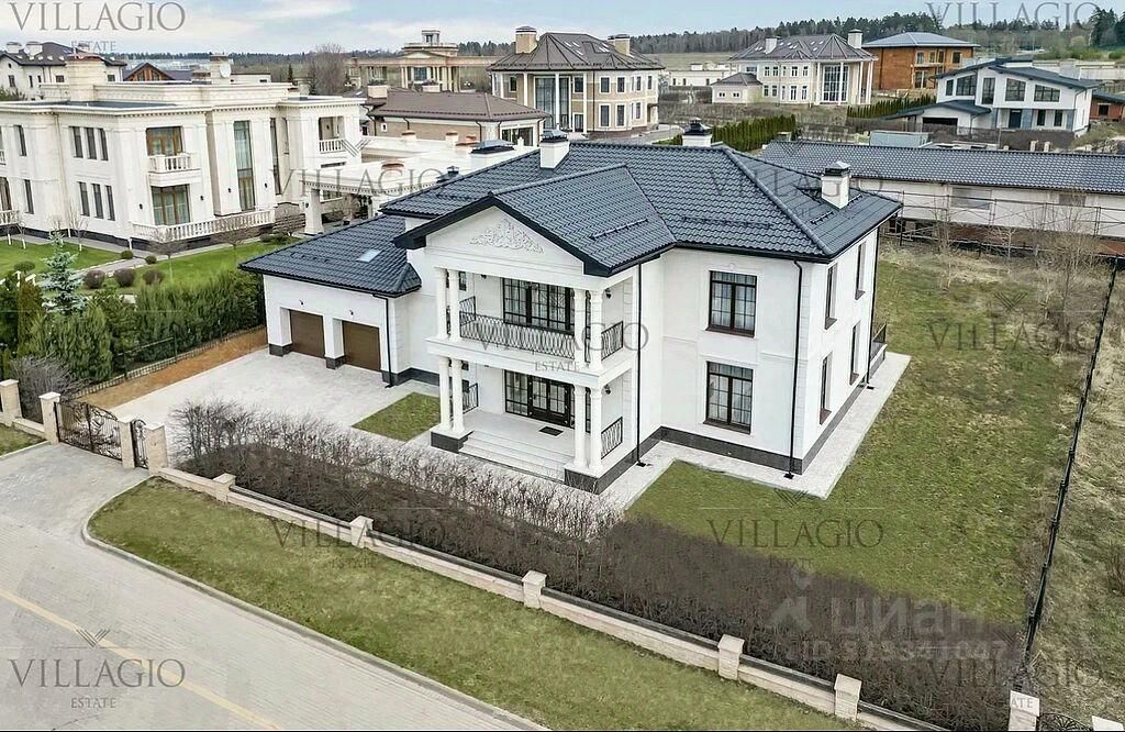 Это дом с 5 спальнями, 3 гардеробными и 4 ванными комнатами. На первом этаже гостиная с камином, столовая и кухня. На втором этаже — спальни, гардеробные, ванные комнаты. В доме есть кабинет и помещение для персонала. На первом этаже также оборудован гараж.