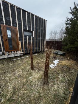 Участок 12 соток, очищен от деревьев и подсыпан грунтом. Забор штакетник, откатные ворота на приводе и калитка.