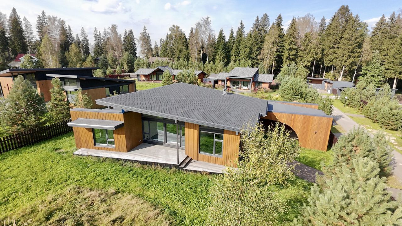 Домовладение общей площадью 234 кв.м, отапливаемая площадь 127 кв.м, во всем доме панорамные, энергоэффективные окна. Планировкой предусмотрены кухня-столовая, гостиная с высокими потолками. Выход на террасу, встроенные шкафы, котельная, 3 спальни, 3 с/у. Полы в доме на разных уровнях. Терраса из лиственницы с южной стороны дома 32 кв м. Крытый навес для авто\мото и вело техники 50 квм. Дом расположен на участке 12 сот. На участке высажены сосны. Есть возможность купить соседний участок с домом.