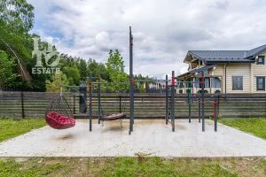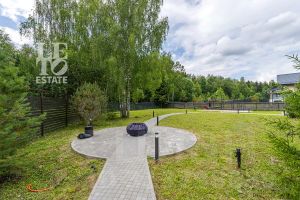 На участке выполнена большая часть работ по ландшафтному дизайну : участок выровнен и зонирован, готово место с кострищем ( газовое ) в современном стиле, установлена спортивная площадка. Особое внимание на участке уделено освещению: подсветка по фасаду дома, прожектор-подсветка крупных деревьев, фонари вдоль дорожек, что создает невероятно сказочную и уютную атмосферу.