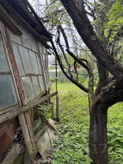 На территории располагается добротный гараж, бетонный фундамент и дом.