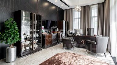 Современный особняк возведен из высококачественных материалов в престижном и экологически чистом Истринском районе Подмосковья. Роскошный интерьер укомплектован стильной мебелью и предметами декора. Кухня оборудована современной бытовой техникой премиального бренда "Neff": варочная, духовка, микроволновая печь и кофемашина. Есть винный холодильник "Liebherr".
