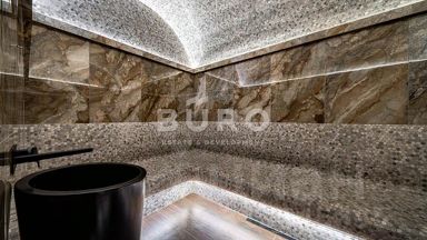 На первом этаже: 2 гардеробных в холле для сезонных вещей и для вещей постоянного пользования, кухня, отдельная столовая зона с мангалом, винным холодильником и выходом на террасу, гостиная со вторым светом и мраморным дровяным камином, выход на террасу с видом на сад, 2 спальни с раздельным санузлом (санузел, 2 душевые и хаммам), кабинет с сейфовой комнатой, который может служить дополнительной спальней, санузел, кладовая комната с окном и доп. холодильниками, котельная с выходом на улицу.