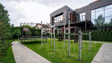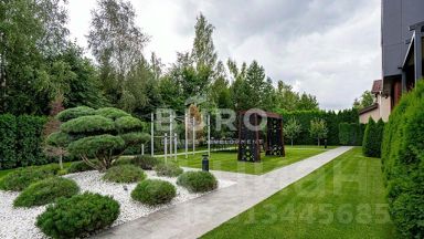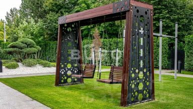 Из больших окон дома открывается вдохновляющий вид на собственный красивый сад. На участке с великолепным ландшафтным дизайном аккуратно уложен газон, сделаны дорожки, растут деревья и кустарники. Есть качели, на которых будет приятно качаться взрослым и детям. Оборудована собственная спортивная площадка. Уличное освещение создает романтическую атмосферу в вечернее время.
