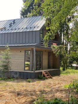 Ищите идеальный дом для семьи? Этот уютный и современный дом ждёт вас! Продуманная планировка включает 4 спальни, кухню-гостиную, два санузла, бойлерную и две гардеробные. Большие панорамные окна REHAU 70 мм с энергосберегающими стеклопакетами наполняют дом светом и открывают прекрасный вид. Наружная отделка — имитация бруса, покрытая маслом LUXE, в сочетании со стильными металлическими панелями клик-фальц. Пол террасы и балконов выполнен из палубной доски, обработанной маслом LUXE.Фасадное освещение добавляет дому шарма в темное время суток.
